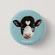 Badge Rond 2,50 Cm Vache noire et blanche face sur bleu clair