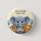 Add a fun and personal touch to your child’s birthday celebration with this woodland storybook animals party button. Featuring a sweet illustrated elephant, deer, and lion with the text “Oliver Turns Three,” this button is perfect for kids, family members, and party guests to wear during the celebration.