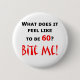 Comme quoi se sent-elle pour être 60 ? Mordez-moi ! Conception humoristique pour 60 ans qui n'est pas heureuse au sujet de tourner 60 et un panneau d'avertissement pour d'autres. Fait un grand soixantième cadeau d'anniversaire.