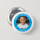 Bouton garçon d'anniversaire. Joyeux anniversaire à vous, ajoutez le nom, l'âge et la photo à ce bouton d'anniversaire personnalisé. Détails bleus et blancs.