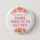 Ce bouton élégant comporte l'expression "Allergic To", suivie d'une liste d'allergènes incluant les produits laitiers, les noix d'arbre et le gluten, en lettrage serif élégant. Vous pouvez modifier le texte pour ajouter vos propres allergies alimentaires. Le design est entouré d'une bordure fleurie de roses sauvages de couleur orange. Un grand cadeau pour votre mère ou votre grand-mère. 🌹 Pour plus d'épingles d'allergie, visitez mon magasin : Zazzle.com/Elder_Vitality 🌹 Pour des commandes personnalisées, envoyez-moi un message sur Zazzle