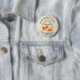 Bouton d'anniversaire personnalisé, avec un arrière - plan couleur crème grunge aux formes géométriques chic et tendance. En haut, un dessin animé représentant un mignon renard orange dormant tranquillement. Un feuille vert courut derrière.