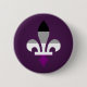 Bouton rond avec fleur-de-lis (fleur de lys ou fleur de lys) symbole avec bandes arc-en-ciel de noir, gris, blanc et violet du drapeau d'asexualité; motif de fierté d'ace sur arrière - plan violet