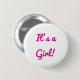 Bouton mignon pour le baby shower ou le genre dévoilent la fête avec un texte personnalisé "c'est une fille" en couleur rose chaud et un arrière - plan blanc solide. Vous pouvez changer la couleur arrière - plan si vous le souhaitez !