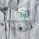 Un joli bouton représentant des fleurs de gloire du matin bleues poussant le long d'une palissade blanche dessinée à l'encre avec de l'aquarelle. Bouton amusant pour une étiquette de nom d'infirmière !