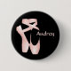 Illustration graphique de chaussures à pointe de ballet sur un bouton personnalisé.