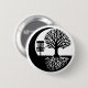 Disc golf themed button. Black and white disc golf basket and tree roots silhouette.
