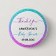 Bouton lumineux et coloré "merci" pour un baby shower avec une parties scintillant rose/bleu/turquoise/aqua/lilas/violet scintille une bordure ombragée. Personnalisez en ajoutant votre propre texte, nom et date de baby shower. Vous pouvez même modifier la couleur du texte et le style de police à l'aide de l'option personnaliser.