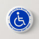 Badge featuring the classic disabled symbol, a man in a wheelchair, on a circular, blue background with your custom text above and below. Follow us on Facebook: @businessstationery or Instagram: @business.perfectlycustom for more products, news, sales and more. Perfectlycustom.com