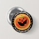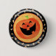Bouton heureux de Halloween avec Jack-o'-lantern et bonbons au maïs sur un fond noir et orange.
