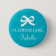 Boutons de badge de nom de fille bleu et blanc turquoise aqua personnalisées avec petit ruban de cravate arc et police élégante. Idéal pour la fête de bachelorette chic, douche nuptiale classe, week-end de filles amusantes et de beaux mariages. Design rond élégant. Posh et épingles mignonnes ! Faites votre propre pour femme de chambre chic, femme de ménage d'honneur, matron d'honneur, fleurie, mère de la mariée, mère du marié et autres membres de l'entourage des épouses, etc. Accessoires wedding planners pour l'équipage de la mariée. Couleur personnalisable.
