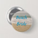 Ce bouton de jeune mariée de plage comporte les mots personnalisables "jeune mariée de plage" contre une photo d'une marée d'océan entrant dans un rivage arénacé. Ceci fait un bouton parfait pour des douches, des parties de bachelorette et des répétitions. Voyez également les économies assorties les cartes de date et les timbres-poste.