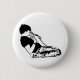 Un bouton noir et blanc comportant un homme se mettant à genoux et chantant dans un microphone.