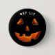Épingle de la saison d'Halloween ou faveurs de fête avec un citrouille jack-o-lantern et les mots : Get Lit.