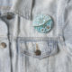 Badge Rond 5 Cm Bouton floral blanc sarcelle