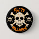 Un crâne et des os croisés composent ce bouton/épingle d'Halloween amusant. Personnalisable pour pouvoir ajouter votre propre texte et modifier la couleur de l'arrière - plan. Montrez votre esprit d'Halloween avec ce design amusant!