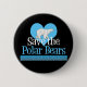 Un bel ours blanc polaire au centre d'un joli coeur bleu au-dessus du texte SAUVER LES OURS POLAIRES en blanc et bleu. Ce mignon bouton d'ours polaire est un mignon rembourrage pour une fille qui aime les animaux.