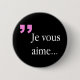 Des citations d'amour françaises sur ton coeur... Je vous aime + arrière - plan noir sur le bouton rond. Disponible avec arrière - plan personnalisable et avec d'autres guillemets français. N'oubliez pas la collection de citations de la Saint Valentin.