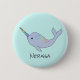 Un narval arc-en-ciel nage dans la mer avec de l'espace pour un nom personnalisé.