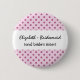 Ce bouton de goupille de demoiselle d'honneur avec sa conception rose de point de polka et une tache pour un sentiment drôle est un choix doux pour certains de vos événements de mariage, y compris votre répétition de mariage et votre dîner de répétition. Vous pouvez également customiser avec le rôle de nom et de mariage de votre personne spéciale de noce, et changez la couleur du ruban pour un regard différent.