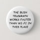 Texte qui dit avec humour "Le télégraphe de brousse fonctionne plus vite que le Wi-Fi dans cet endroit". "Bush telegraph" est l'argot australien pour désigner les réseaux de commérages, sous-entendant que la communication par bouche-à-oreille est plus efficace qu'Internet.