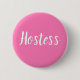 Bouton Hôtesse rose avec belle calligraphie. Parfait pour les faveurs de mariage, fête de mariage. Vous pouvez le personnaliser avec votre nom.
