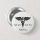 Badge Rond 5 Cm Caduceus Médicale 3 lignes Texte personnalisé