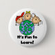 Le chiffre enfants de trois bâtons entourent un globe du monde et le texte le lit "est amusement à apprendre !" sur le T-shirts orienté d'école, les cartes, les tasses, les autocollants, les boutons, et toute autre vitesse !