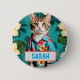 Chat Hawaiian Sticker, amoureux des chats, dame de chat badge bouton facile à modifier le nom été tiki vacances chat