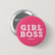 Un bouton épingle rose chaud amusant et élégant avec la typographie rétro marquee "Girl Boss". Cette conception est disponible dans d'autres produits.