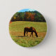 Badge Rond 5 Cm Cheval Brown rouge dans les arbres d'automne