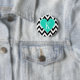 Badge Rond 5 Cm Chevron noir et blanc avec le monogramme turquoise