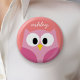Badge Rond 5 Cm Chouette caricaturale mignonne en rose et corail