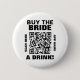 Bouton de code QR scannable de fête de bachelorette en blanc et noir avec le message "acheter un verre à la mariée" et le nom de l'application.