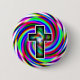 Badge Rond 5 Cm Croix arc-en-ciel
