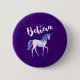 Bouton épingle avec une jolie licorne aquarelle peinte dans des aquarelles pastel douces de rose, violet et bleu. Texte de typographie inspirationnel dit Croyez en une police tendance avec une étoile au-dessus de la lettre i. Placé sur un arrière - plan royal violet.