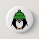 Cute penguin cartoon design pinback button Funny design with bird wearing green winter hat.