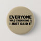 Si vous aimez les citations sarcastiques drôles ou les grands dessins humoristiques, ce slogan original" tout le monde pensait que je viens de le dire" est pour vous. C'est un excellent cadeau pour votre famille, vos amis ou vous-même ! Ce design est idéal pour tous ceux qui aiment le sarcasme et l'humour. Si vous aimez cette citation drôle, découvrez d'autres oeuvres similaires dans omitay store. Restez en sécurité et merci de soutenir un artiste local.