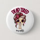Badge Rond 5 Cm Dead Tired Maman Vie Skeleton Messy Bun Bandana