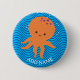 Une pieuvre de dessin animé orange mignonne. Boutons d'animaux bébé. Modifier le nom pour personnaliser. Version motif vague bleue. Idée cadeau pour les enfants.