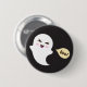 Le bouton ou l'insigne mignon et d'amusement de pinback comportant un petit fantôme heureux de style de kawaii avec une bulle de la parole et le texte "huent". Conception de bande dessinée d'amusement. Pour des demandes ou l'aide faites sur commande avec customiser svp employez le lien de contact de magasin ci-dessus.