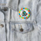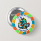 Bleu, vert, jaune et orange dragon thème garçon d'anniversaire bouton garçon. Mignonne pour tout petit garçon qui aime les dragons ! De mignons dragons en casquettes d'anniversaire tenant des gâteaux d'anniversaire.