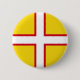 Bouton rond avec design avec un drapeau du comté historique de Dorset, en Angleterre, Grande-Bretagne; drapeau jaune avec une croix blanche avec une frontière rouge