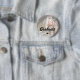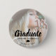 Bouton de graduation élégant avec une photo du diplômé, un casquette de cérémonie de remise des diplômes, le nom des étudiants, l'année de cours, et le mot diplômé dans une police de caractères.