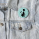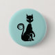 Élégant chat noir posant avec une patte levée. A une mignonne queue bouclée et porte une chaudière fantaisie.