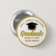 Ce bouton élégant de l'étiquette du nom de diplôme d'or comporte votre nom de diplômé du secondaire ou du collège et l'école en typographie chic et audacieuse entourant un casquette moderne noir grad. Grand parti pour la classe supérieure.