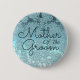 Mariage Mère De La Groom bouton d'épingle personnalisé. Turquoise vert turquoise motif floral personnalisent votre typographie. Classy, chic, élégant, moderne, tendance, élégant, beau métal succulent. Pour modifier la typographie, cliquez sur modifier la conception. Copyright de l'image Marg Seregelyi Photography.