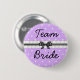 Bouton de fête de bachelorette ou de douche de mariée de l'équipe de mariée à pois violets et noirs.
