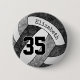 Ce bouton de volley-ball couleur équipe présente l'image réaliste d'un volley-ball noir, gris et blanc stylisé qui a un motif kaléidoscopique floral artistique mélangé avec ses panneaux noirs et gris - personnalisez avec le nom de l'athlète et le numéro de maillot - par katz_d_zynes