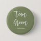 Badge Rond 5 Cm Équipe du marié vert sauge blanc